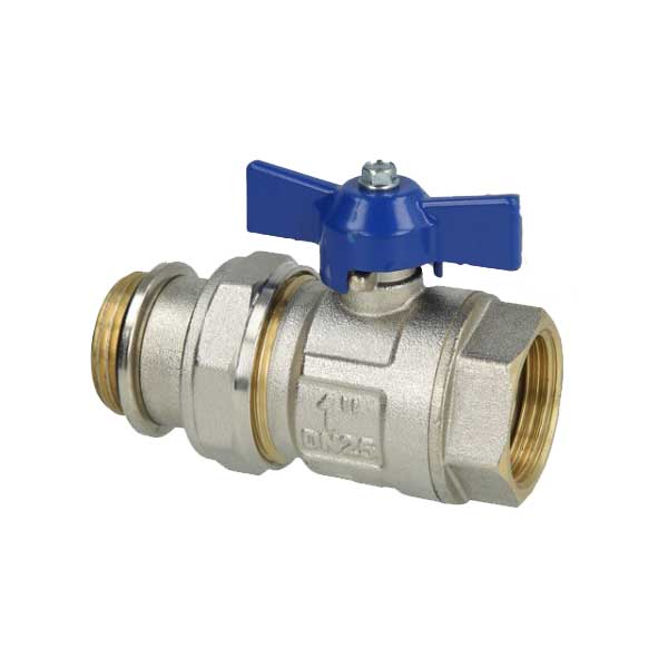 Omschrijving: EL-PLUS kogelkraan 1″ blauw met koppeling aansl.