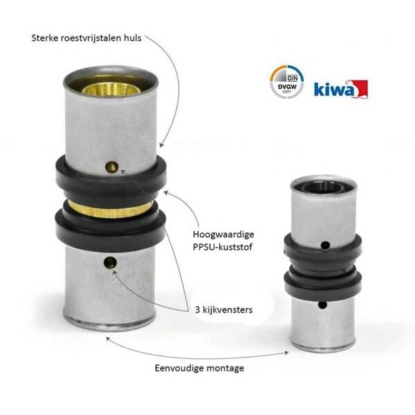 - Niet lekdicht wanneer niet geperst (afmetingen 16-32 mm)