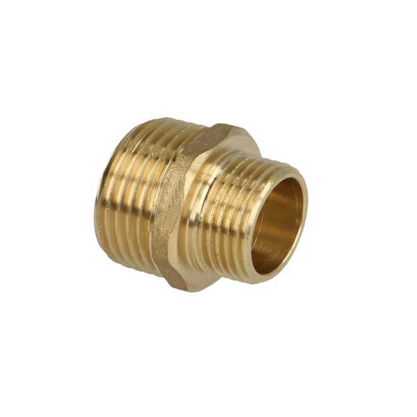 Messing schroefkoppeling met 2 uitwendige schroefdraden. Deze messing schroefkoppeling kan worden gebruikt voor drinkwater, verwarming en koelinstallaties. Het materiaal voldoet aan de nieuwste Europese voorschriften en is geschikt voor drinkwater conform de UBA-Positiv-lijst.
