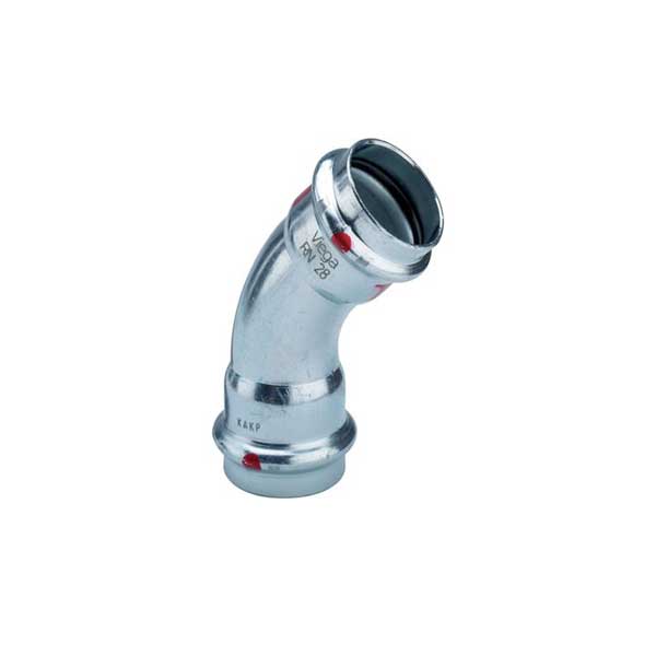 | Omschrijving | Bochtkoppeling 45gr. Prestabo staal press 22mm Viega |